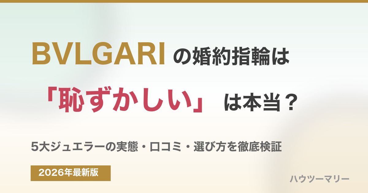「ブルガリ 恥ずかしい」「ブルガリ 婚約指輪 ありえない」という検索が一定数ある背景には、ブルガリのファッションジュエリー(B.zero1・セルペンティなど)の派手なイメージがブライダルリングにも投影されているためです。この記事では、ブルガリの婚約指輪の実態・価格・口コミをデータとともに徹底検証します。