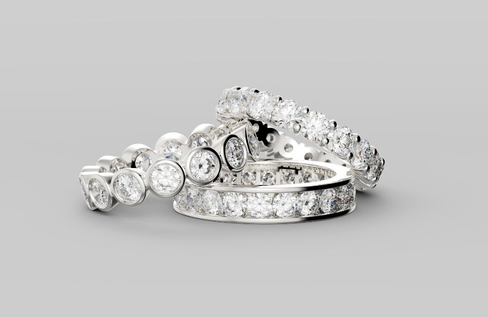 また、ダイヤモンドやカラーストーンの配置がリング一周にわたることで、「永遠」や「終わりのない愛」を象徴するとされ、ロマンティックな意味合いを持つのもポイント。