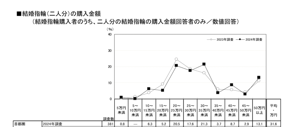 (1)結婚指輪の購入価格の全国平均はペアで31.6万円